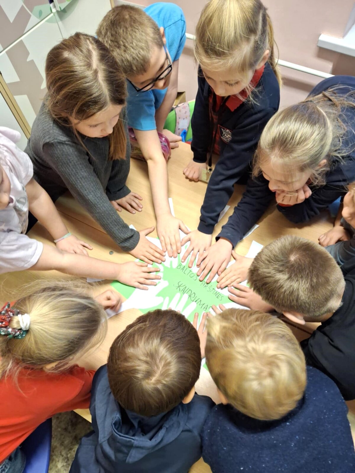 Pabaigoje sukūrėme plakatą iš baltų rankų ,,Baltos pirštinės skaidrumas", kur balta spalva simbolizuoja tyrumą, tiesą ir lygybę. Taip pat ,,pasodinome" baltų eglučių mišką, reiškiantį skaidrumą ir vienodumą.