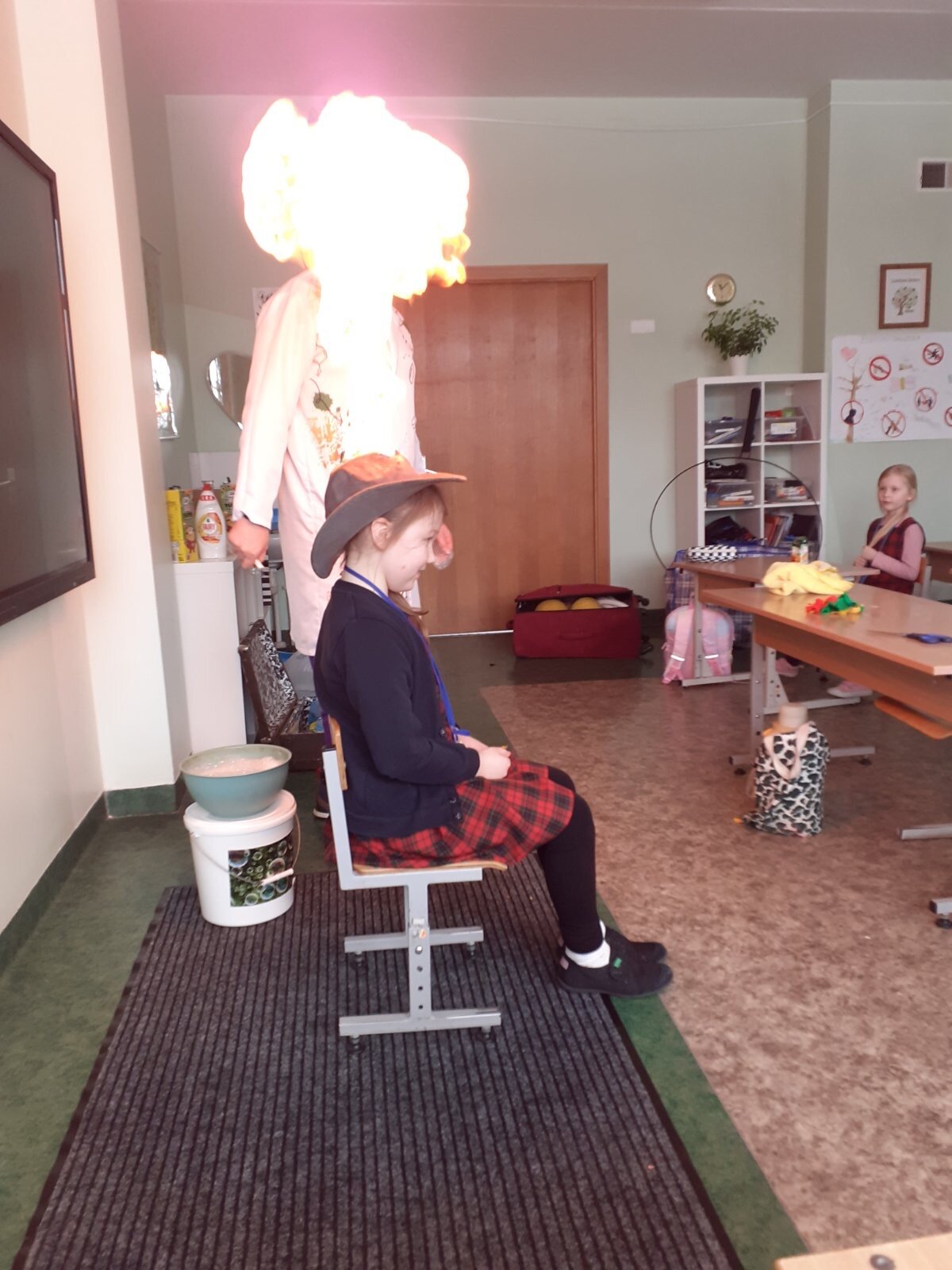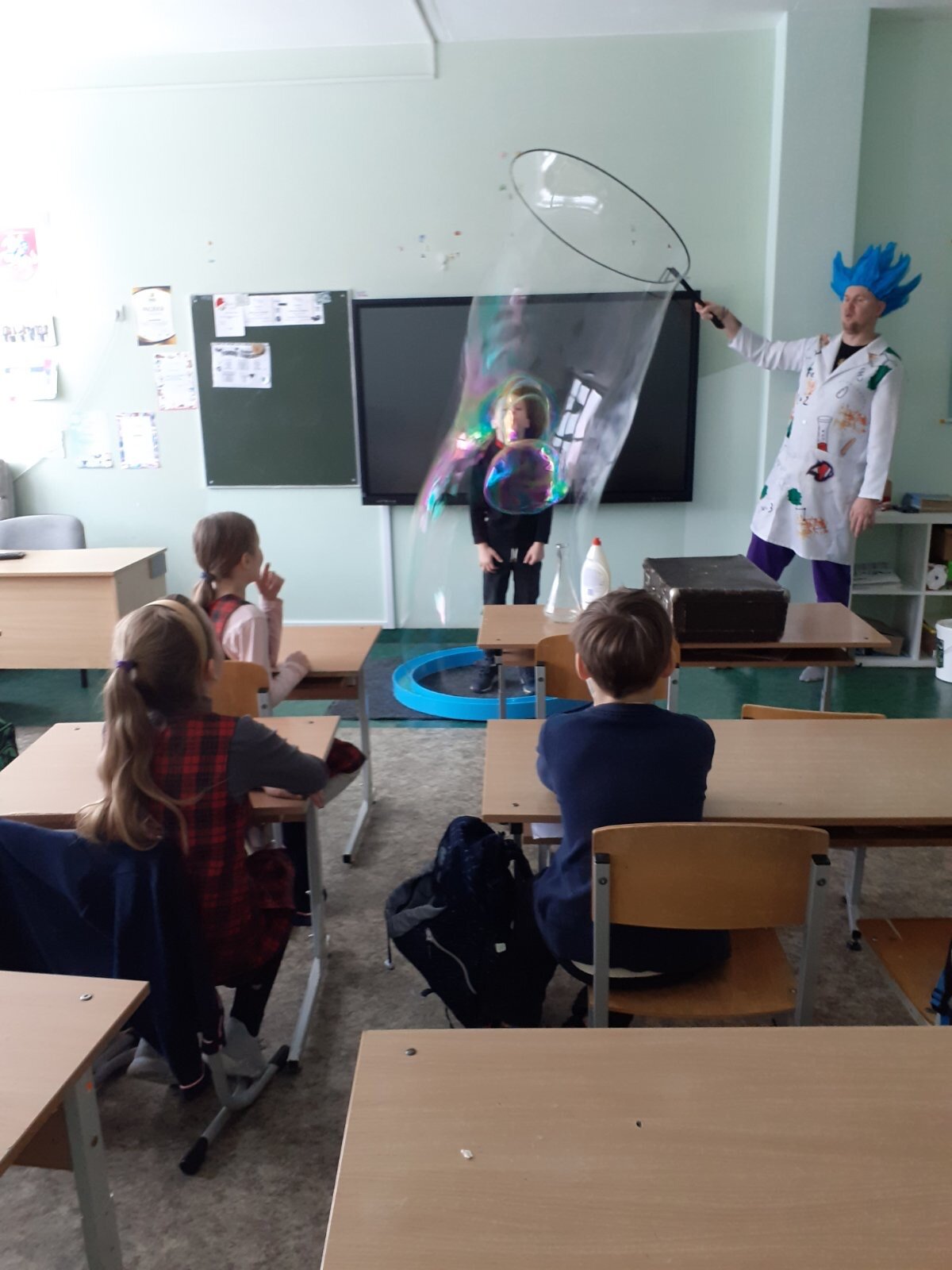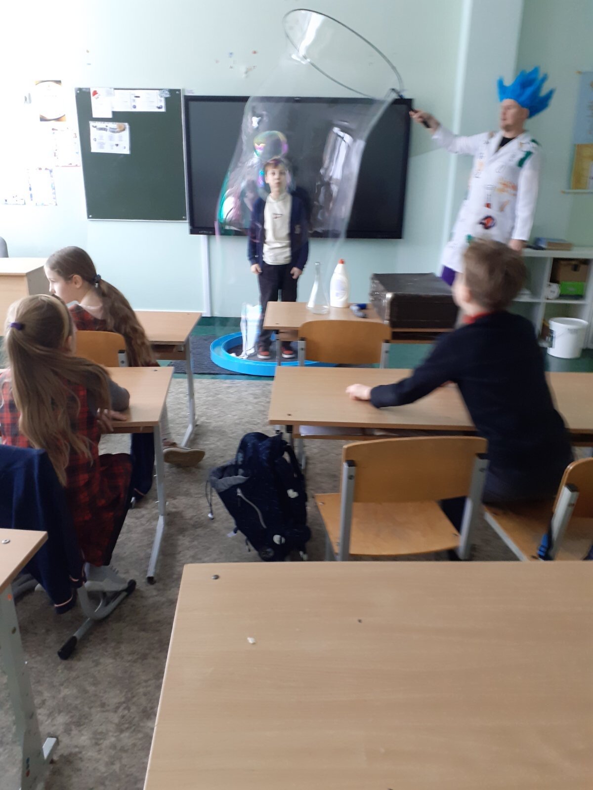 Sausio 29 dieną antroje „D“ klasėje vyko truputį burtininko, truputį alchemiko ir tiesiog linksmo mokytojo Vaido viešnagė. Jis rodė įvairius eksperimentus ir triukus su vandeniu, muilo putomis, ugnimi ir azotu vaikams, pasakojo apie tai, kaip tai padaryti (bet tik su suaugusiųjų pagalba), šoko ir dainavo su antrokais, iš stebuklingo lagamino traukė saldumynus, kitas dovanas.