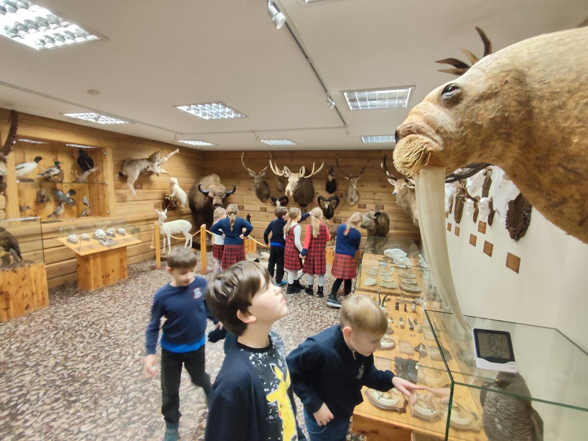 Taip pat mokiniai susipažino su laukiniais gyvūnais iš viso pasaulio, apžiūrėjo meškų, liūto, begemoto, raganosio, bizono bei kitokių egzotinių gyvūnų iškamšas, kurių muziejuje daug sukaupta, nemaža jų dalis yra medžioklės trofėjai.