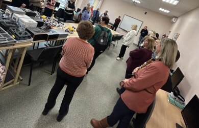 Stakliškių gimnazija parodė savo erdves, pradinių klasių mokytoja Dalė Stankevičienė pasidalino savo patirtimi įtraukiant didelių ugdymosi poreikių ugdytinį, motyvuojant jį keisti savo elgesį.
