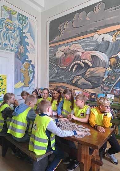 Dar vienas sustojimas Alantos dvare, kuriame vyko lobių paieška. O prieš tai Alantos dvare esančioje bibliotekoje susėdo nepaprasto grožio pasakų kambaryje ir klausė skaitomos ištraukos iš Antano Pivoro knygos „Vėjūnės svajos ir meilės paslaptys“.