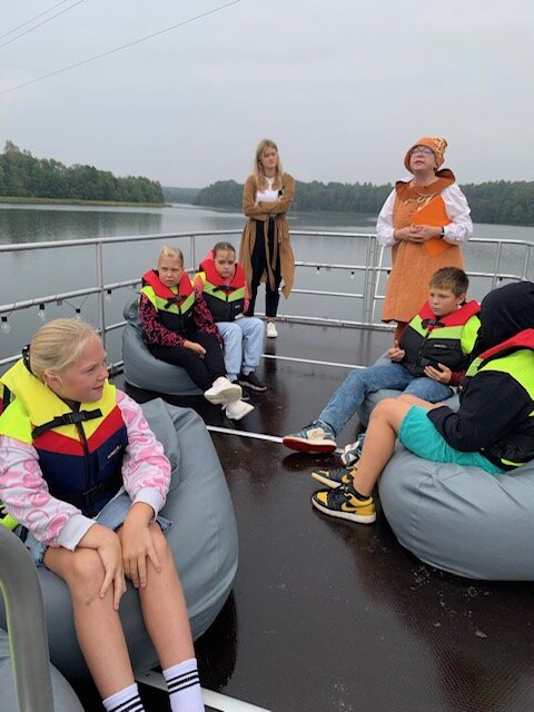 Beplaukiant Asvejos ežeru Molinukė vaikams papasakojo Asvejos ežero atsiradimo istoriją, o laivo kapitonai Marius ir Laura papasakojo vaikams, kuo šis ežeras ypatingas. – apie įsimintiną 4D klasei surengtą edukaciją pasakoja mokytoja Indrė.