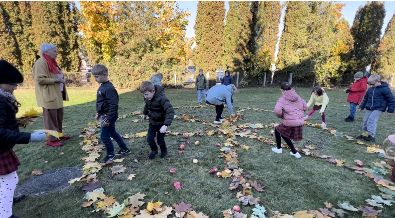 Lauke pamuzikavę, čia pat mokyklos kieme ir šalia mokyklos prisirinko gamtos dovanojamų gėrybių ir kūrė rondo iš jų. Vyko smagi ir nuotaikinga dailės, technologijų ir muzikos pamoka.