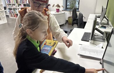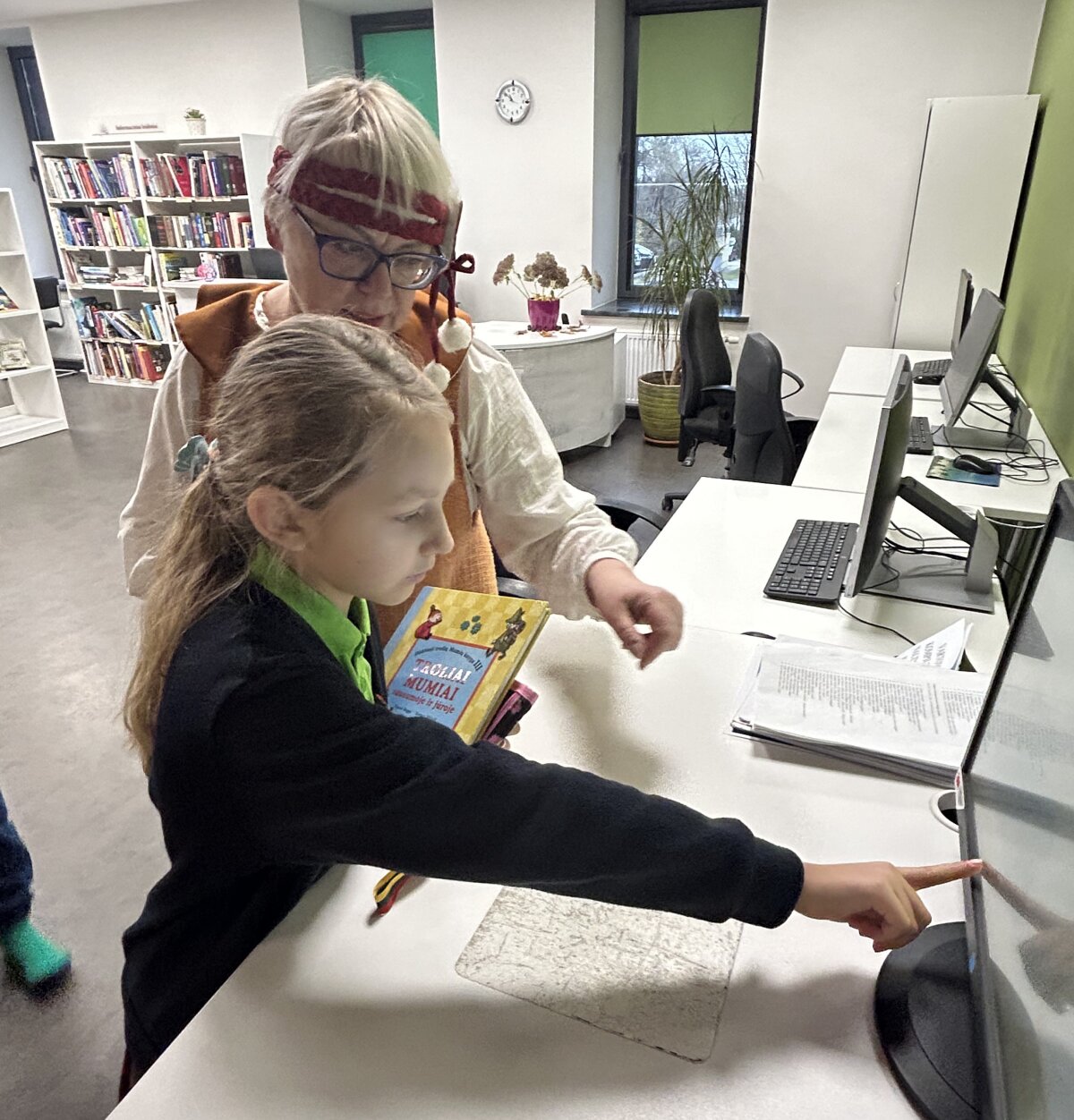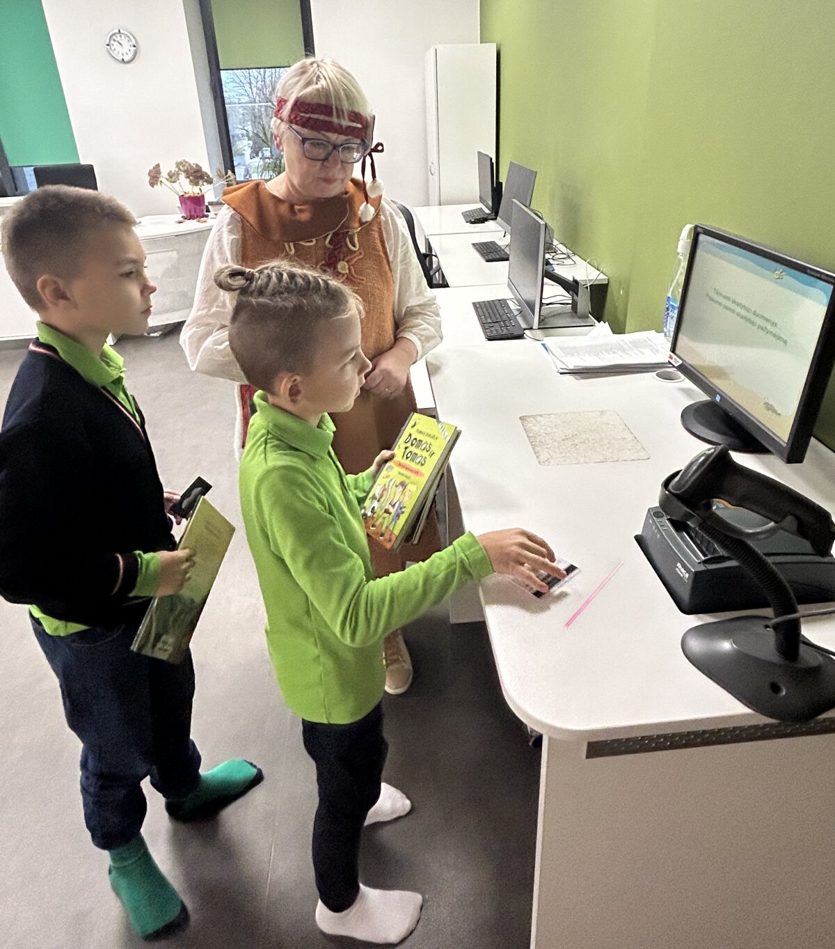 Mokiniai, kurie atsinešė viešosios bibliotekos skaitytojo pažymėjimus, išsirinko po knygą, ją patys nuskanavo, atsispausdino „čekius”.