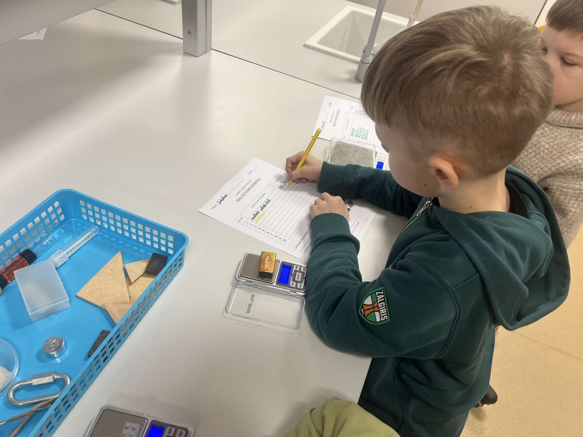 Svėrėme pasirinktus daiktus ir jų svorį surašėme į lentelę.