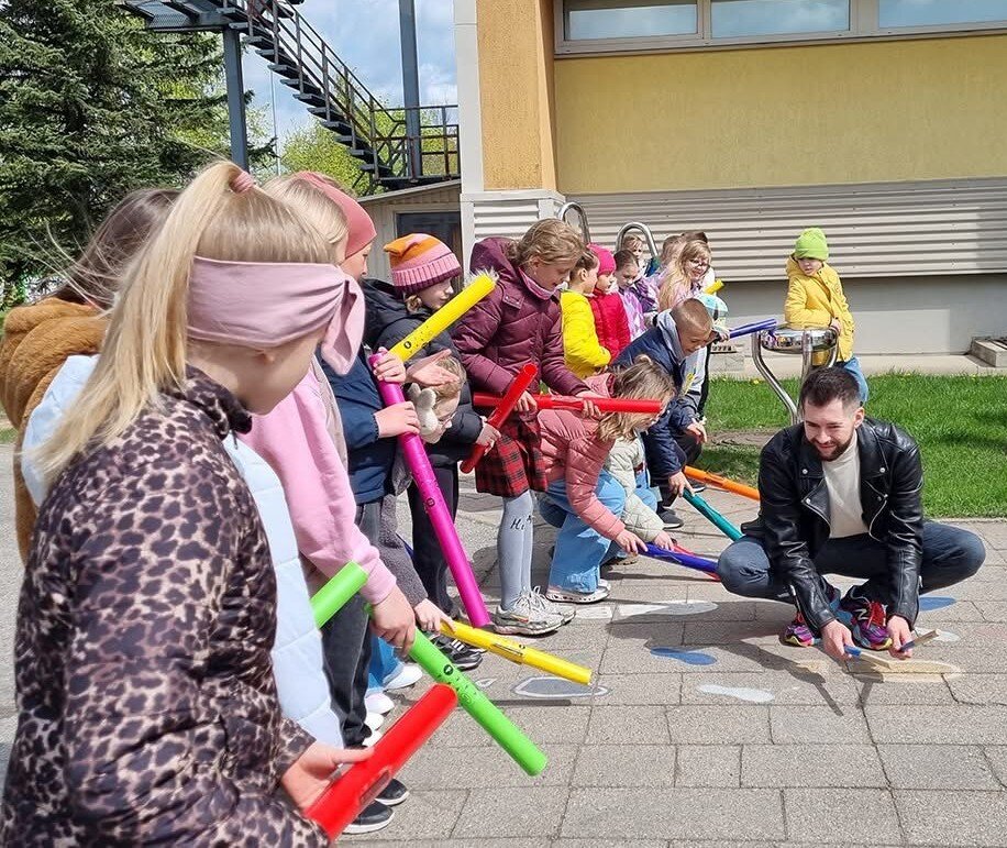 Balandžio 29 dieną Molėtų pradinės mokyklos kieme įrengtoje lauko muzikos instrumentų erdvėje vyko improvizuota muzikos pamoka, kurioje dalyvavo ne tik Molėtų pradinės mokyklos 2-3 klasių mokiniai, bet ir pradinukai iš Alantos bei Giedraičių A. Jaroševičiaus gimnazijų. Pamoką vedė Lietuvos nacionalinio operos ir baleto teatro orkestro artistas perkusininkas Lukas Budzinauskas, jam padėjo LNOBT operos solistė Regina Šilinskaitė – Burakauskienė.