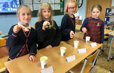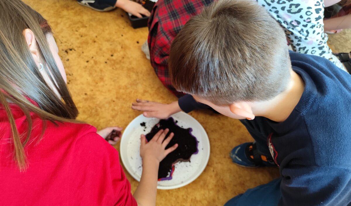 Dar pirmų klasių mokiniai sėjo augalų sėklas. Šio eksperimento rezultatų vis dar laukiama, o tikslas yra išsiaiškinti, ar tikrai kiekvienam augaliukui, kaip ir kiekvienam gyvam organizmui žemėje reikalingas vanduo, kas atsitinka, kai vandens nepakanka, – pasakoja pirmokų mokytoja Ieva.