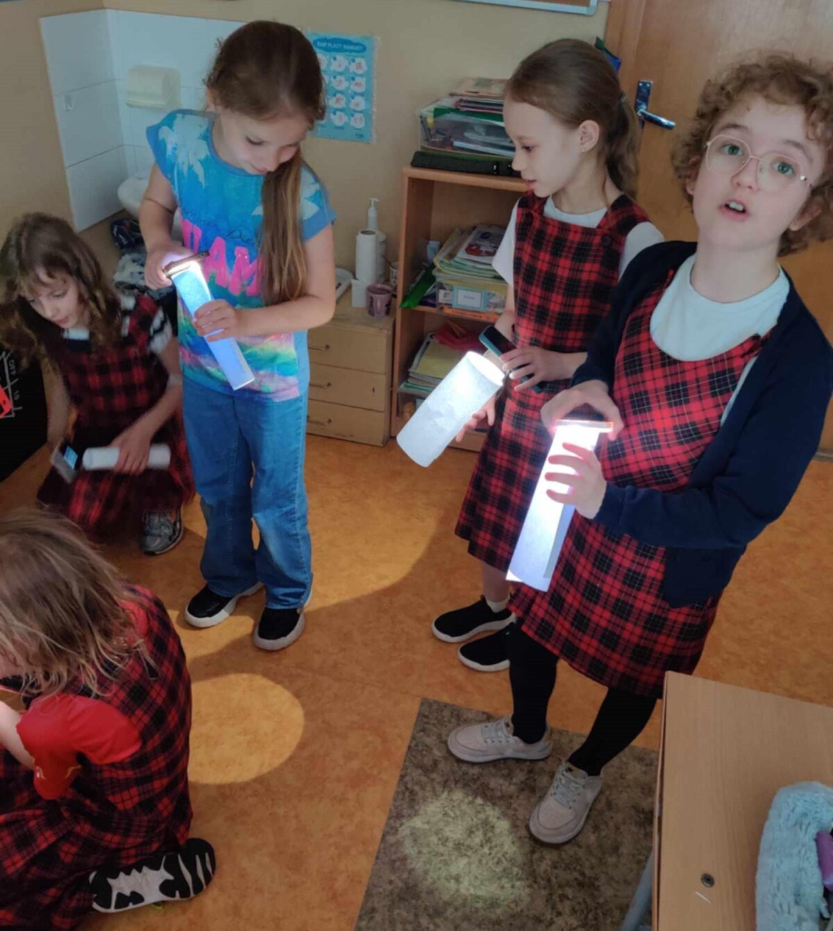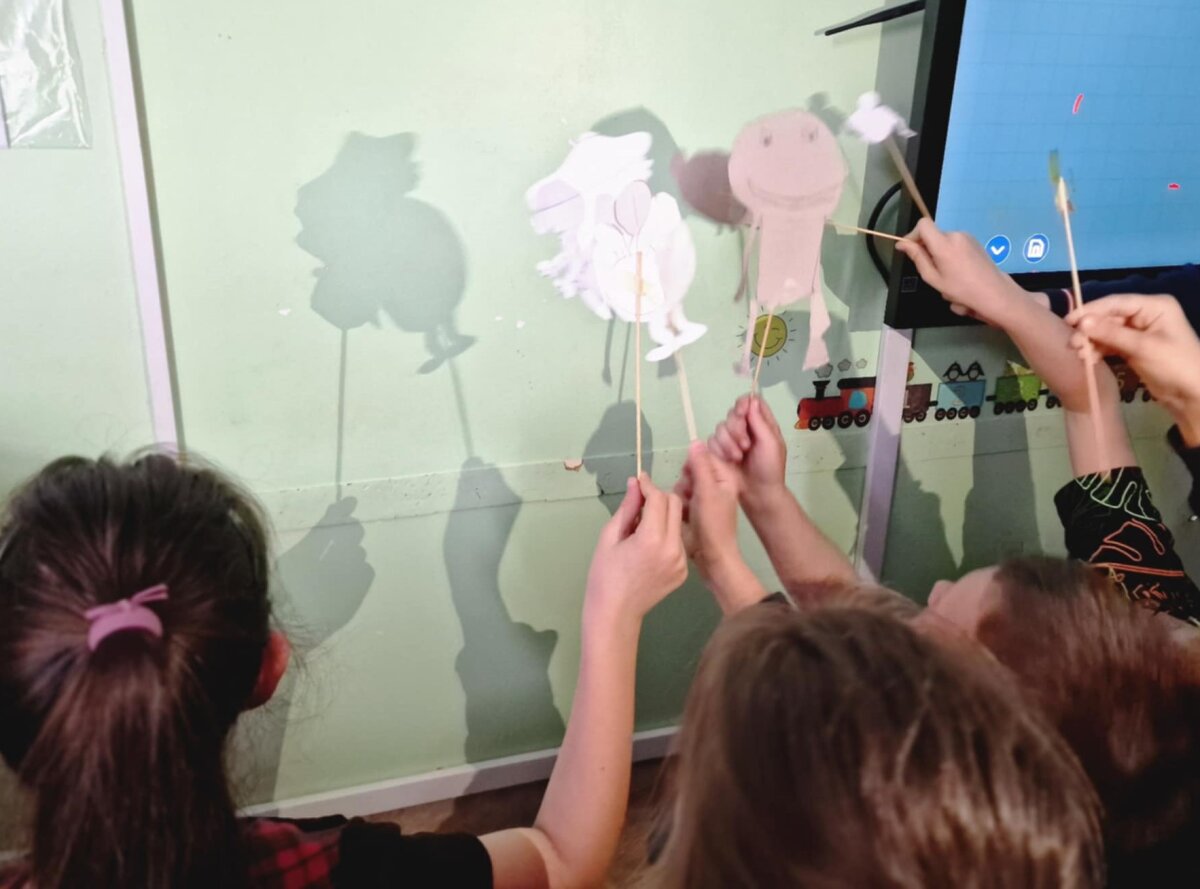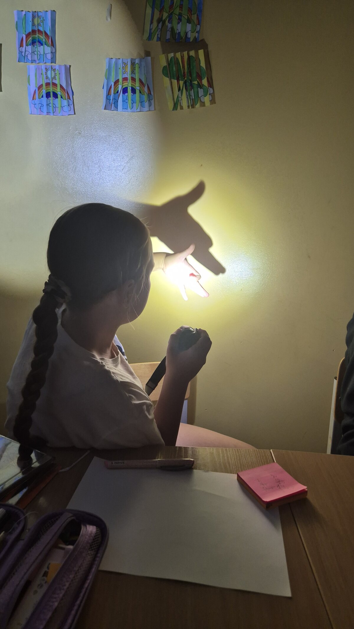 Vaikai eksperimentavo su šviesą atspindinčiomis ir sugeriančiomis medžiagomis, tyrinėjo šešėlius ir patys kūrė šešėlių teatrą. Naudodami spalvotus filtrus aiškinosi, kaip maišosi šviesos spalvos, o iš skaidrios plėvelės ir žibintuvėlio sukūrė paprasčiausią projektorių ir stebėjo, kaip jų piešiniai atgyja ant sienos. Didžiausią įspūdį antrokams paliko stebėjimas, kaip šviesa lūžta vandenyje – liniuotė staiga pasirodė sulūžusi, netgi pasikeitė rodyklės kryptis.