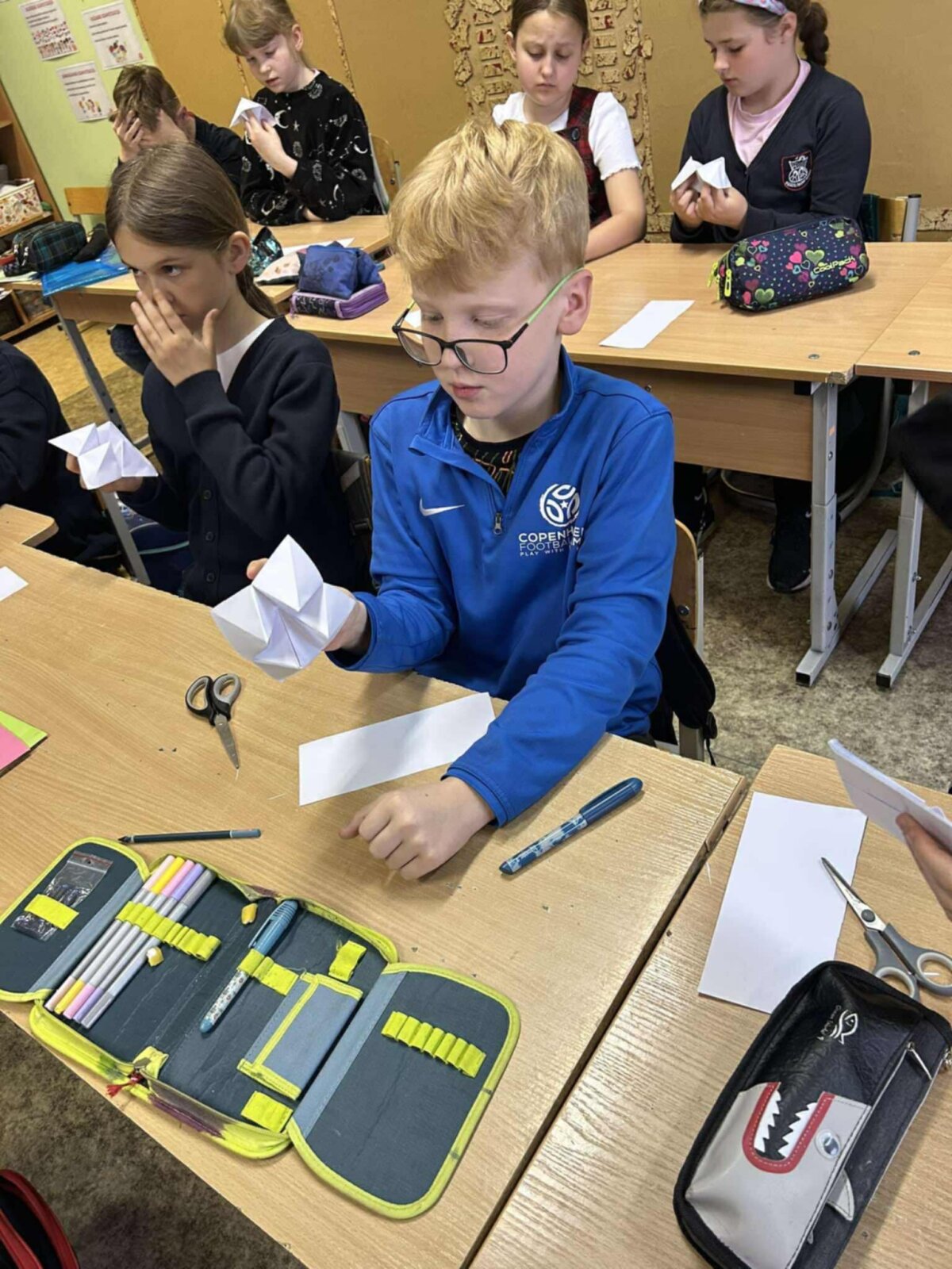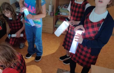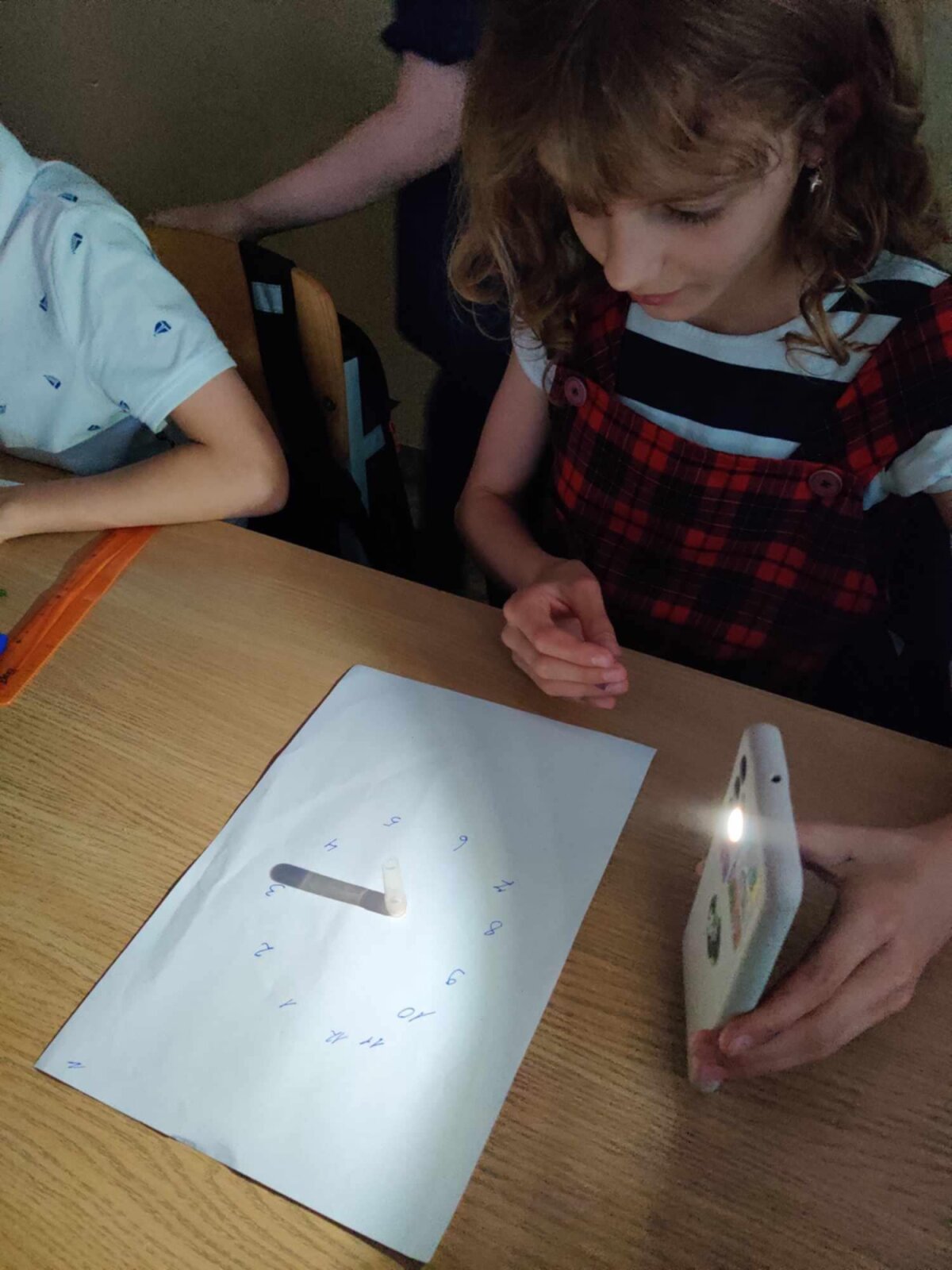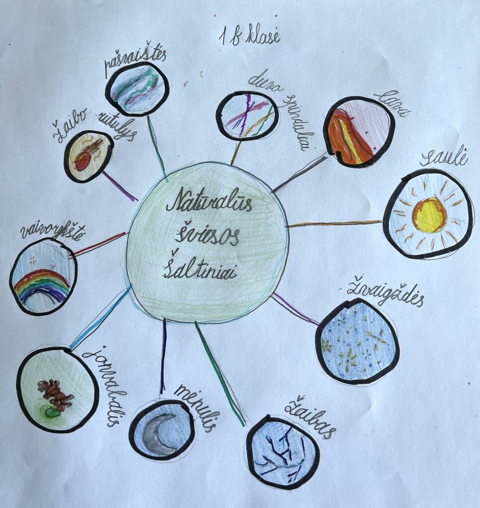 3 klasių mokiniai STEAM dieną klausė pasakos apie dieną ir naktį, lankstė iš popieriaus ir žaidė, stebėjo, kaip šviesa atsispindi ant daiktų, spėliojo, ar gali būti kitokia šešėlio spalva, kūrė saulės laikrodį, matavo šešėlio ilgį, žaidė su rankų šešėliais. Atlikdami bandymą „Kaip sklinda šviesa“, išsiaiškino, kad šviesa keliauja tiesiomis linijomis. Stebėjo, kaip ji atsispindi veidrodyje, kaip diske matosi vaivorykštės spalvos.