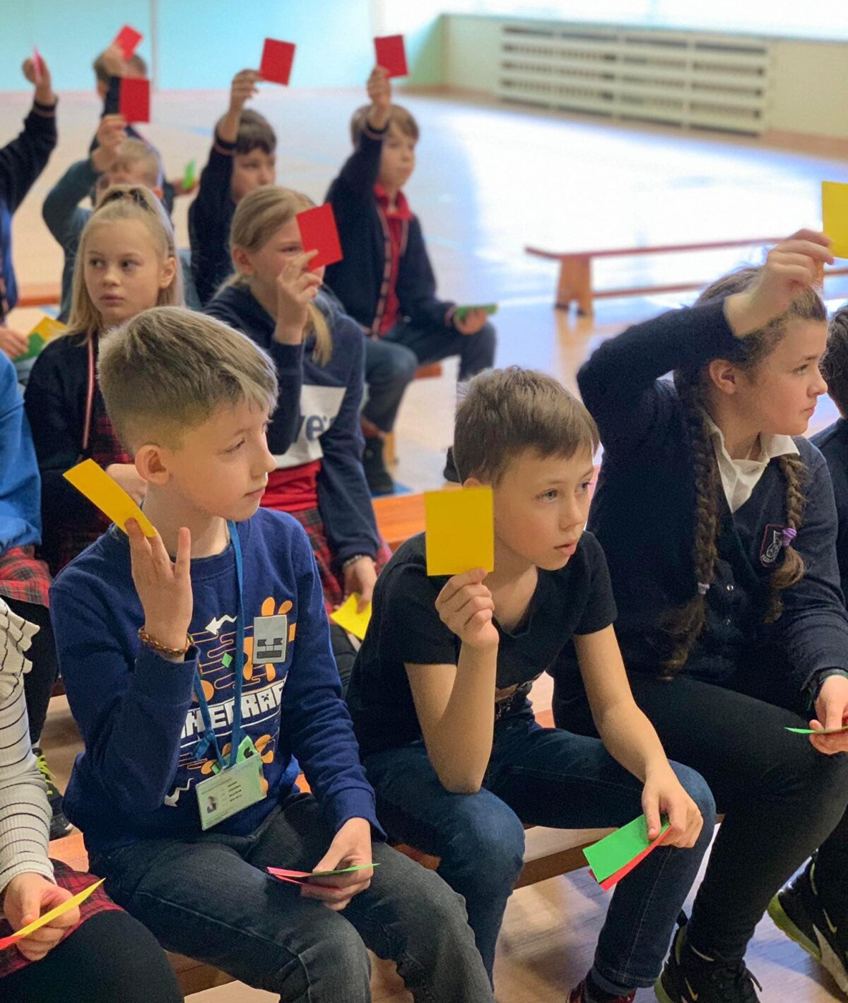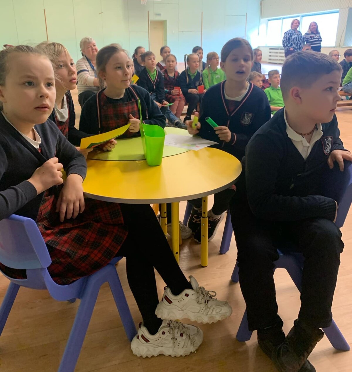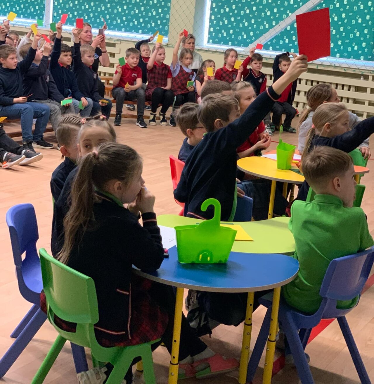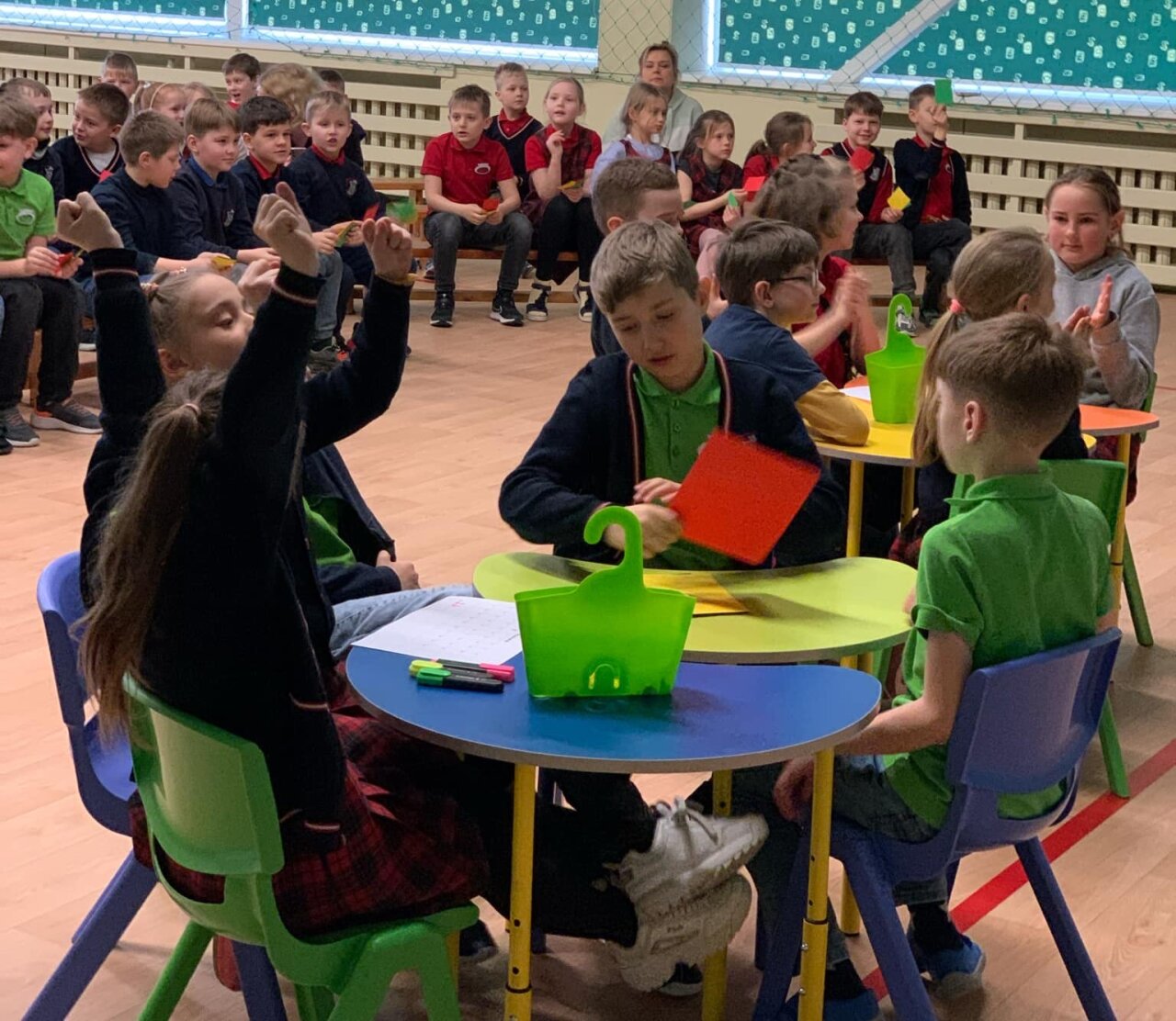 Komandų palaikytojai labai atsakingai bendradarbiavo netrukdydami, kol komanda tariasi, ir tik atitinkamos spalvos kortelėmis parodydami savo žinias, plojimais ir džiaugsmo šūksniais palaikydami savo komandų narius, kai jau pasirodydavo teisingi atsakymai.