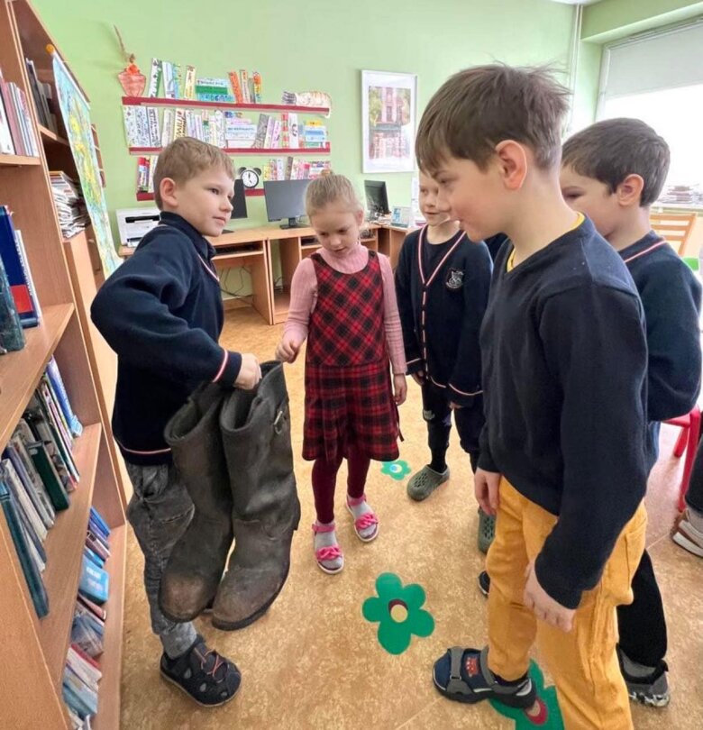 Dabar galime džiaugtis 1B klasės mokinių (mokytoja Eugenija) sukurtais darbais, po renginio bibliotekoje „Kiek sveria knygnešio batai“.