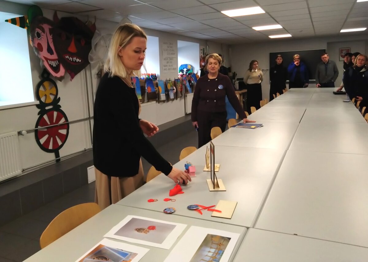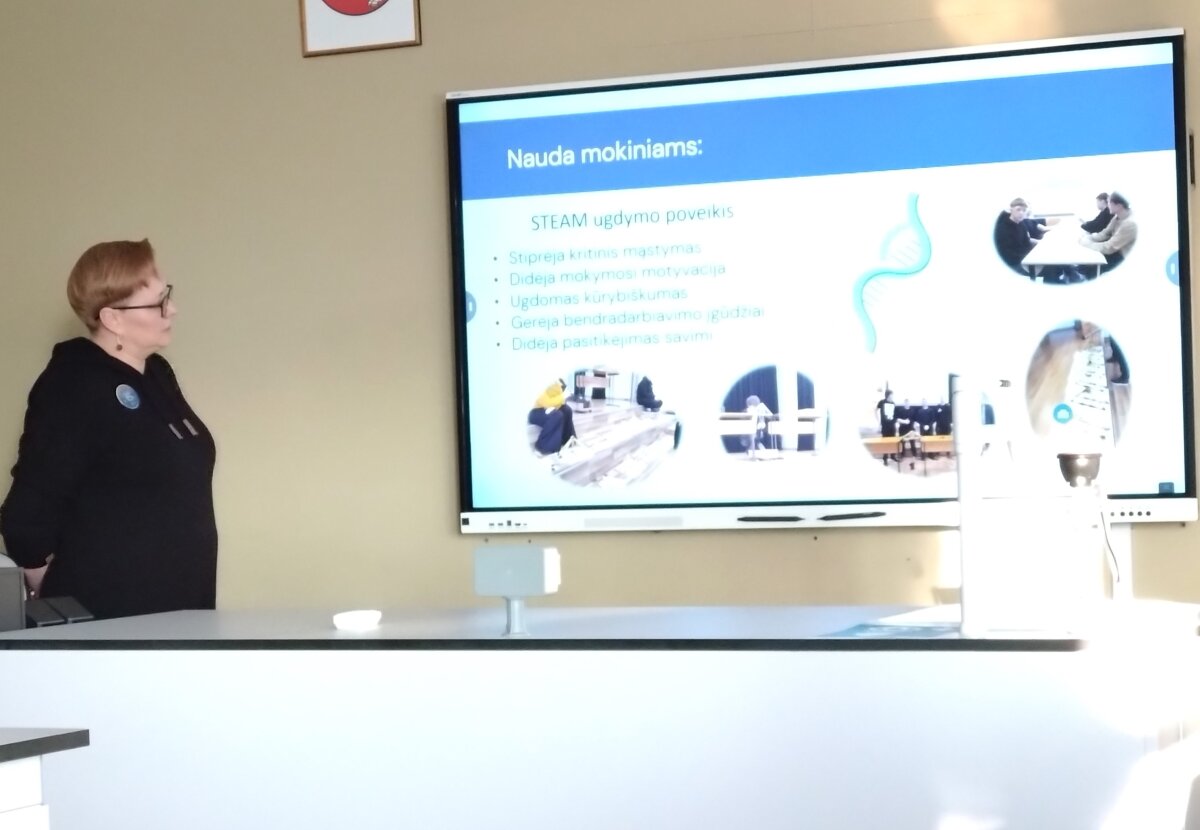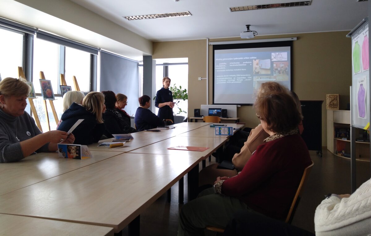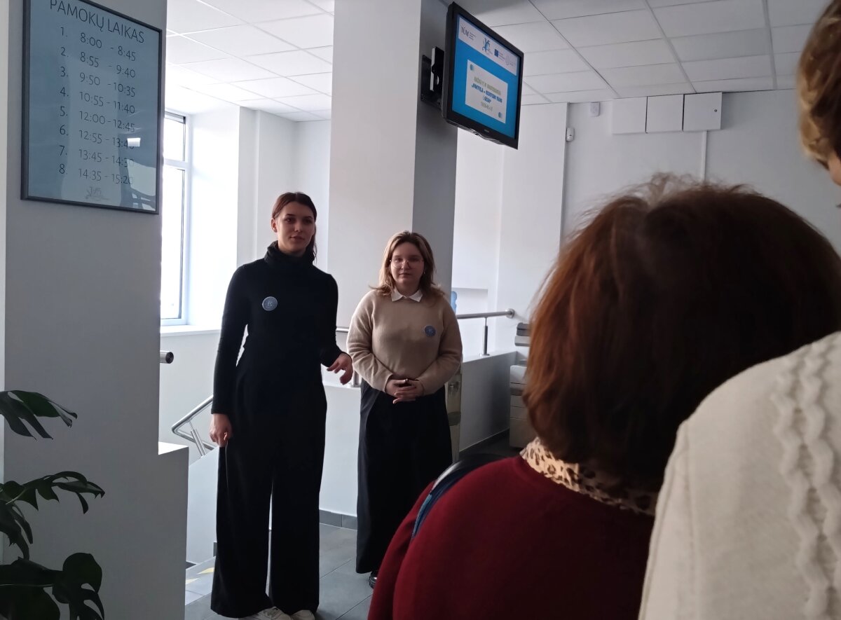 Nuo pasitikimo ir visos kelionės po įvairias mokyklų erdves metu konferencijos dalyvius lydėjo mokyklos gidų būrelio narės. Jų lydimi aplankėme STEAM laboratoriją ir kūrybines dirbtuves, kur jau spėjo veiklas išbandyti ir pradinės mokyklos mokiniai. Etnoklubo seklyčioje buvome pasitikti sutartine, savo laisvumu ir gebėjimu pristatyti veiklas sužavėjo debatininkai, tie patys mokiniai pristatė ir savo finansinio raštingumo pasiekimus, kaip idėjos ir hobiai virsta verslu pristatė mokomųjų bendrovių nariai. Čia pat ir mums kilo idėjos pasikviesti gimnazistus, kad verslumu ir finansinio raštingumo žiniomis pasidalintų su pradinukais. Po apsilankymo atnaujintame mokytojų kambaryje, įkurtame sensoriniame kabinete, susipažinę su medijų būrelio darbais ir muzikos kabineto galimybėmis, kurio priemonėmis taip pat mokytoja dalinosi ir su pradinės mokyklos vaikais, keliavome į pietų pertrauką. Tada buvome pakviesti dalyvauti 4 laboratorijų veiklose ir TŪM veiklų pristatymu Gimnazijos skaitykloje.