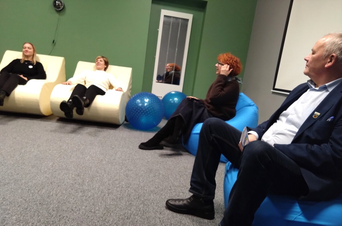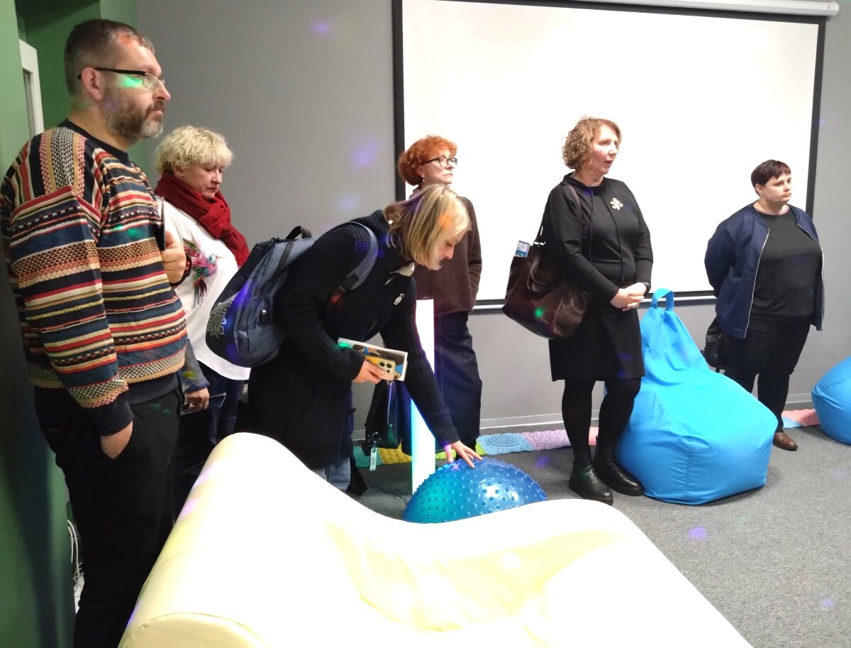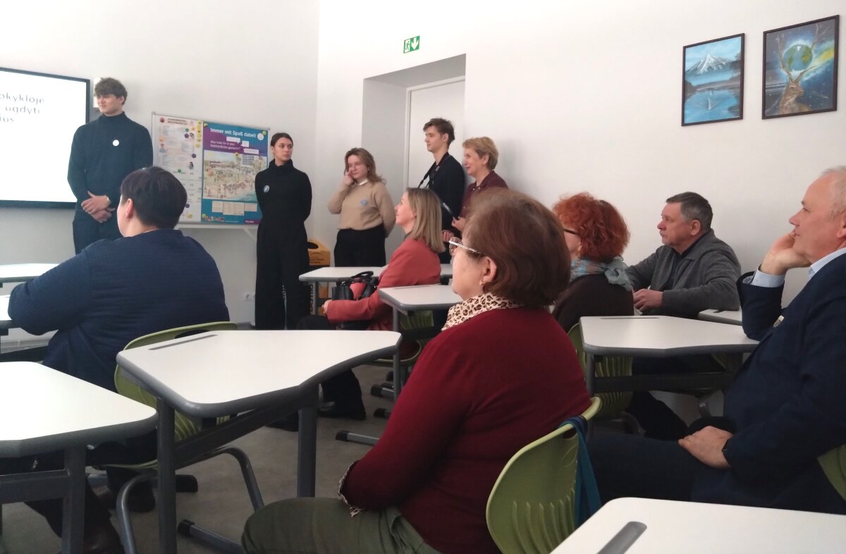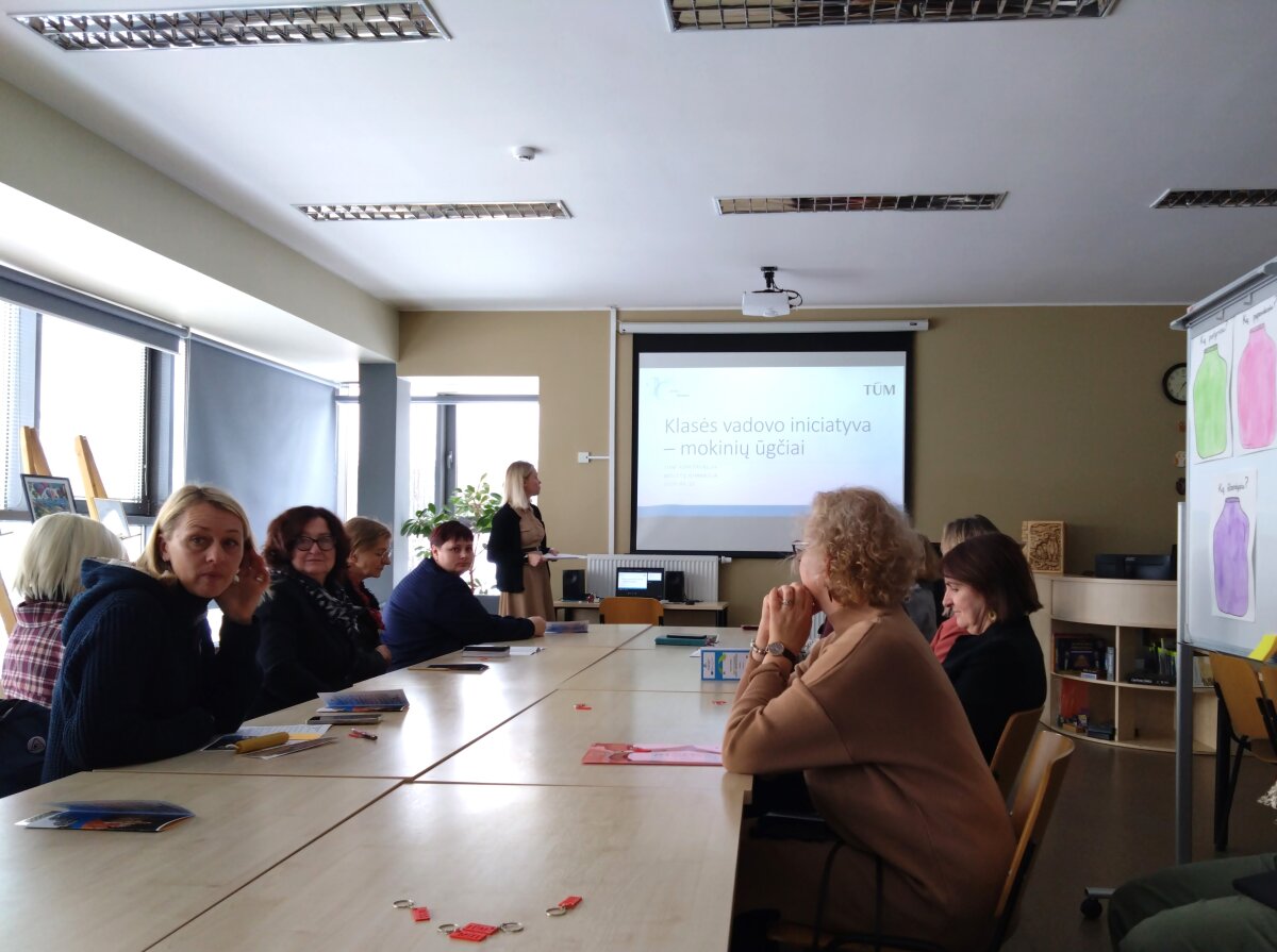 Nuo pasitikimo ir visos kelionės po įvairias mokyklų erdves metu konferencijos dalyvius lydėjo mokyklos gidų būrelio narės. Jų lydimi aplankėme STEAM laboratoriją ir kūrybines dirbtuves, kur jau spėjo veiklas išbandyti ir pradinės mokyklos mokiniai. Etnoklubo seklyčioje buvome pasitikti sutartine, savo laisvumu ir gebėjimu pristatyti veiklas sužavėjo debatininkai, tie patys mokiniai pristatė ir savo finansinio raštingumo pasiekimus, kaip idėjos ir hobiai virsta verslu pristatė mokomųjų bendrovių nariai. Čia pat ir mums kilo idėjos pasikviesti gimnazistus, kad verslumu ir finansinio raštingumo žiniomis pasidalintų su pradinukais. Po apsilankymo atnaujintame mokytojų kambaryje, įkurtame sensoriniame kabinete, susipažinę su medijų būrelio darbais ir muzikos kabineto galimybėmis, kurio priemonėmis taip pat mokytoja dalinosi ir su pradinės mokyklos vaikais, keliavome į pietų pertrauką. Tada buvome pakviesti dalyvauti 4 laboratorijų veiklose ir TŪM veiklų pristatymu Gimnazijos skaitykloje.