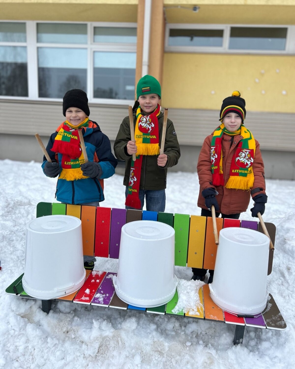 Molėtų pradinės mokyklos mokiniai muzikuodami lauko varpais, varpeliais, metalofonais ir būgnais išreiškia meilę Lietuvai! Kviečiame džiaugtis ir švęsti Vasario 16-ąją!